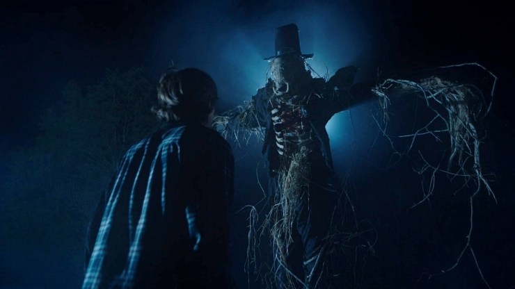 Classic adolescent anthologies Are You Afraid of the Dark? and Goosebumps each include tales of scarecrows (“The Tale of the Silent Servant” and “The Scarecrow Walks at Midnight” respectively) coming to life and doing someone’s bidding. And because of that, these stories incidentally turn out to be more similar than different. Meanwhile, another horror series, also aimed at younger viewers, thinks the end of time will be caused by scarecrows. This episode of The Haunting Hour is set in a rural–urban fringe and focuses on two siblings earning money through farming. While Bobby (Richard Harmon) excels at raising cows, his younger sister Jenny (Bailee Madison) struggles because the crows continue eating her crops. A stranger (Juan Riedinger) then comes into town and sells the girl a scarecrow. Bobby’s suspicions about the mysterious salesman later prove correct when his parents and the other residents start disappearing.