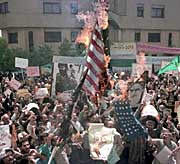 Agence-Presse FranceA crowd of 2,000 demonstrators gather outside UN headquarters in Qom, on July 6, 1997. Ahmad Khatami, a Shiite Moslem cleric, told the crowd that Salman Rushdie would be executed soon.