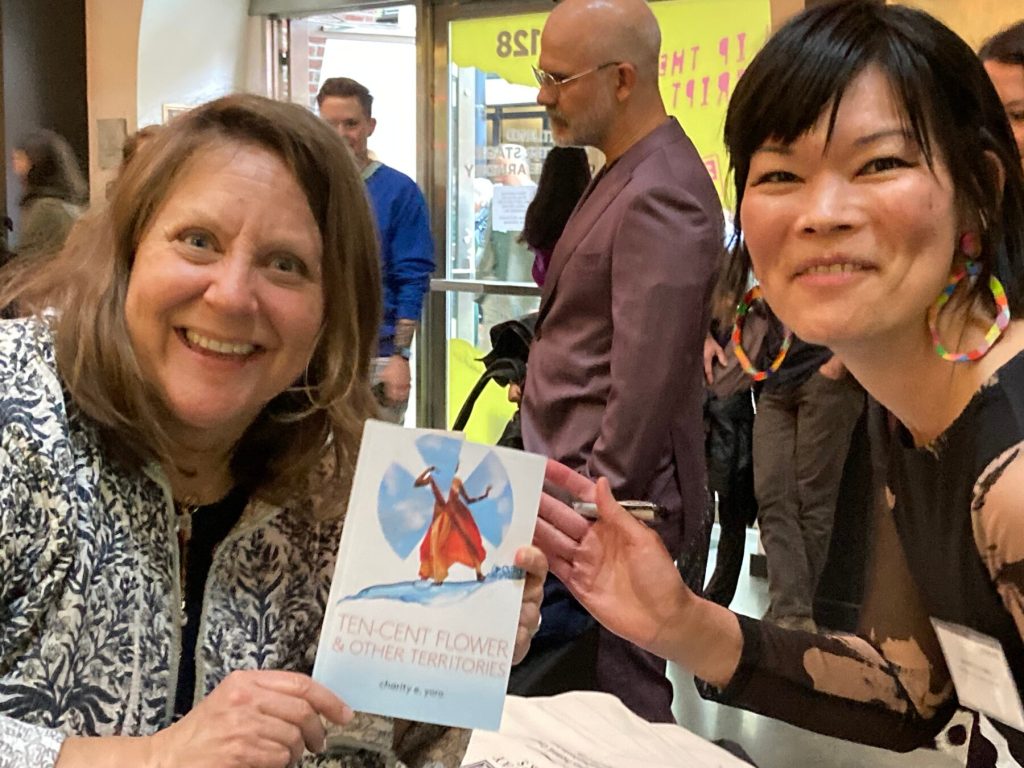 Portland poet Charity E. Yoro (right) signed several copies of her poetry collection “ten-cent flower & other territories” for Broadway Books, owned by Kim Bissell (left). Yoro went on to win the poetry award. Photo by: Amy Wang
