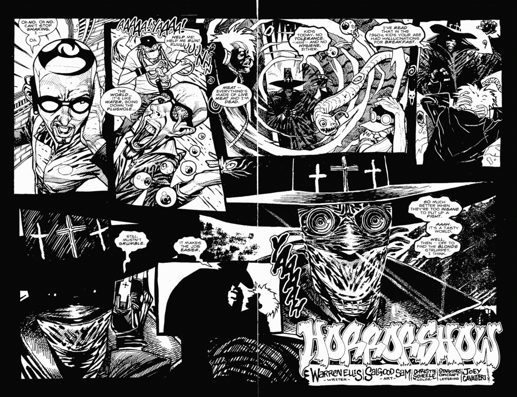 From an unpublished Ghost Rider 2099 story, by Warren Ellis and Salgood Sam
