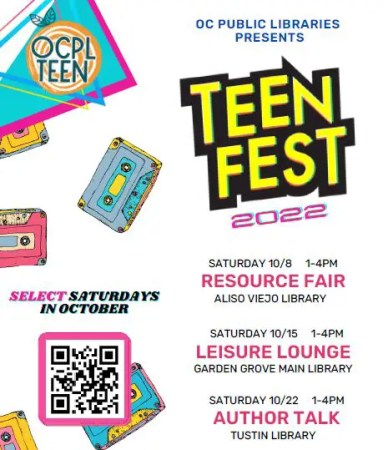 Teens and their families are welcome to join in the fun at TeenFest 2022! For more information on OC Public Libraries programming and services, visit ocpl.org.