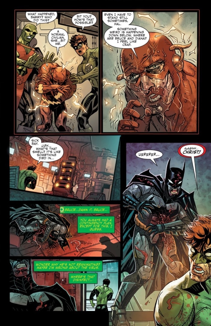 If you thought the zombie apocalypse of DCeased was a bleak affair, then you haven’t seen its predecessor in “Blackest Day.” In this tale, the world has already succumbed to a rapid viral outbreak of the rising dead, with all but an oblivious Justice League on the Watchtower stricken. And once an infected Flash is teleported through before they can be warned what’s coming, the remaining heroes fall helplessly, one by one. And while no evil shall escape his sight, that doesn’t guarantee there’s much Hal Jordan can do to stop it as he bears witness to the end of the world.