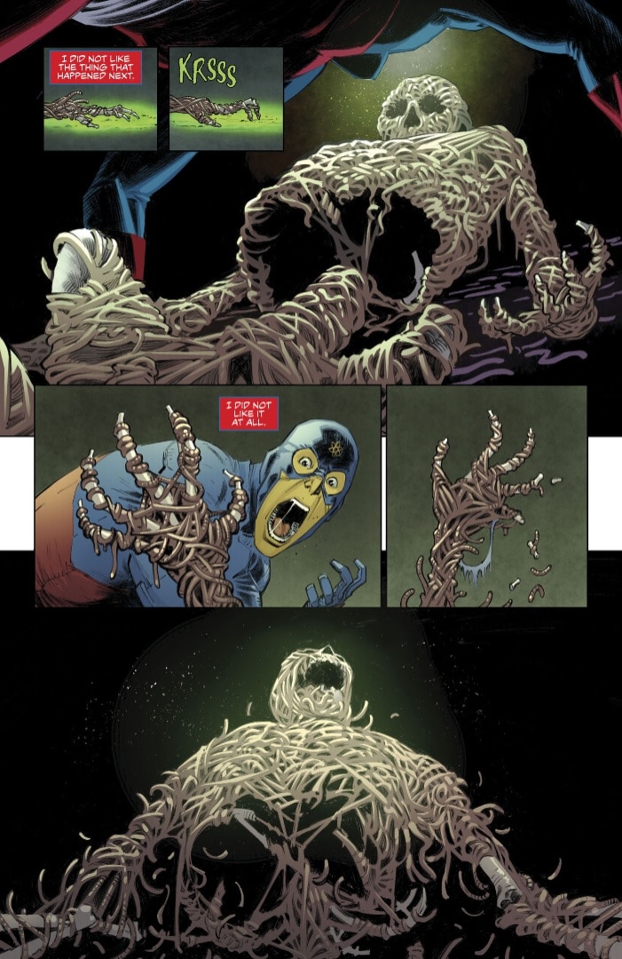 There is no older, no more definitive fear in the history of mankind than fear of the unknown. It’s informed every stage of our development as a species, both for good and for ill, even as our bravest trudge forward to expand the light of understanding into the unceasing darkness. But try all we might, there are some things in our universe which remain stubbornly unknowable—and that scares us to pieces. It’s what the work of Lovecraft is all about. And those Lovecraftian themes find their way here, as consummate scientist Ryan Choi contends with a monster he cannot define. Here lies a tale of eldritch, cyclopean and all those other Lovecraft adjective-worthy proportions.