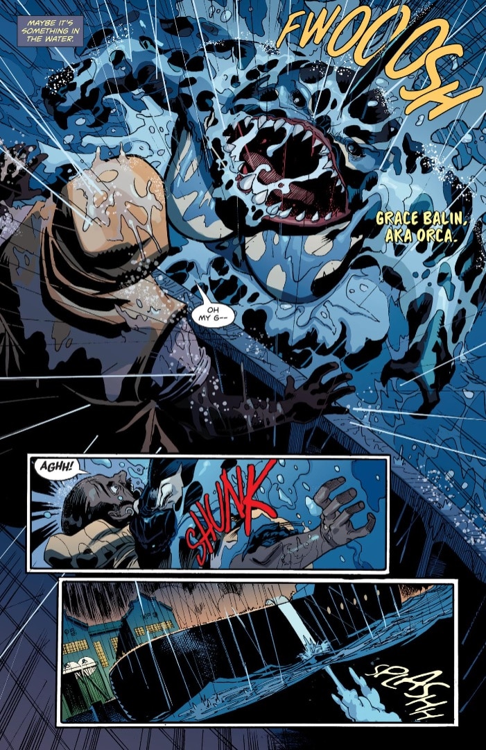 Here’s the secret of a good horror movie: the slasher, the monster, the alien entity, is the hero. We root for the beast as it claims its prey because the narrative frames the victims in a way which makes it seem like they have it coming, whether they’re evil, foolish, careless, or just rude. It’s a flavor of fear that all Batman fans should know well. After all, is the Dark Knight’s purpose not to strike fear in the hearts of criminals in the name of Gotham’s salvation? In “The Hunt,” Batman’s scariest child teams up with one of his most monstrous foes to deliver true fear into the heart of Gotham’s unseemliest element. And that’s really the beauty of Cassandra Cain. Mask off, she’s the sweetest girl on Earth. Mask on…you almost feel sorry for the bad men in her sights.
